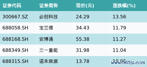 截至收盘配资门户网站,北京主题涨跌幅最高的五只股票为:必创科技(300667.SZ)、宝兰德(688058.SH)、安博通(688168.SH)、三一重能(688349.SH)与诺禾致源(688315.SH)。详情见下表: